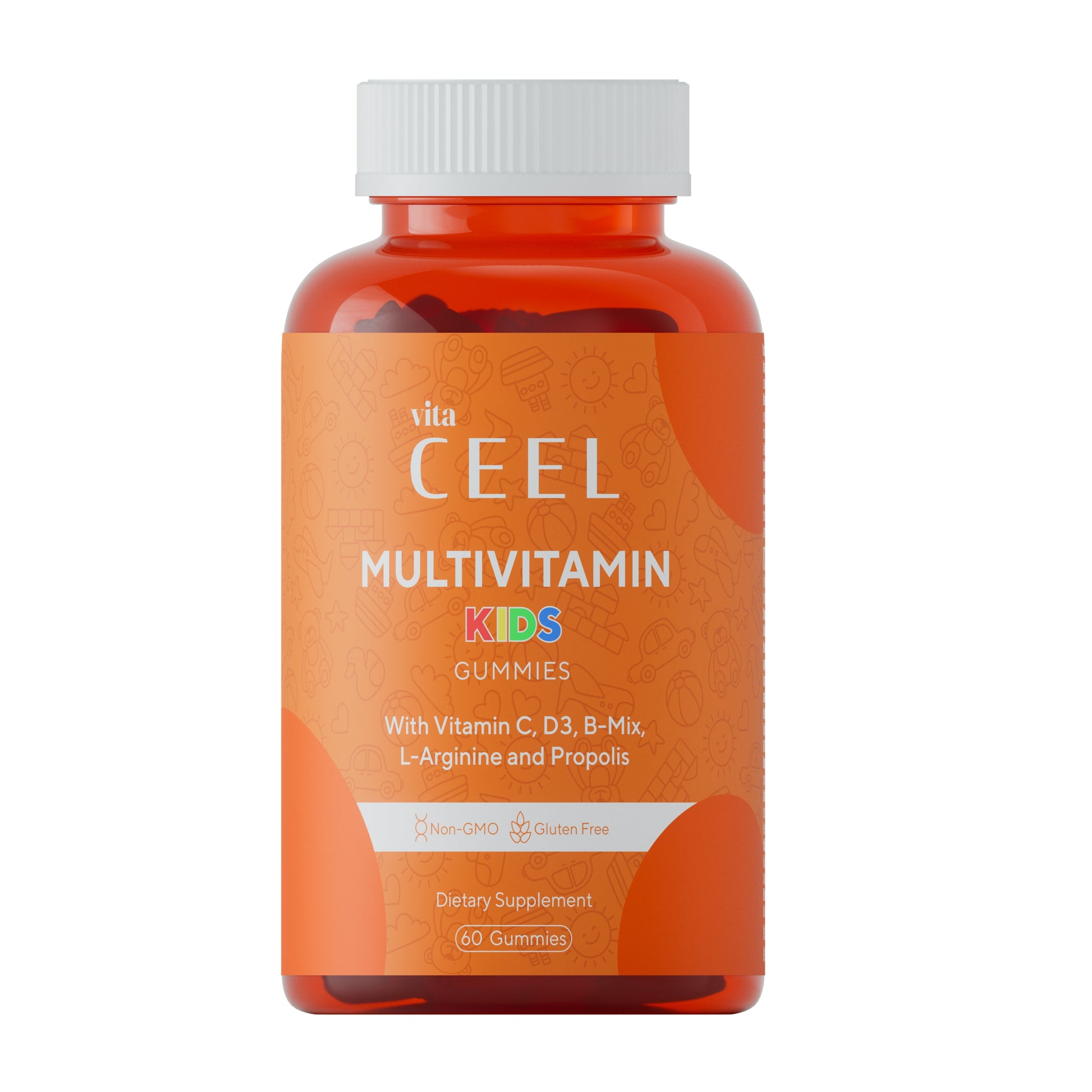 Vita Ceel Multivitamin Gummies за деца са предназначени за специфичните детски нужди, като подпомагат растежа, развитието и цялостното здраве на малчуганите. Комбинацията от специално подбрани витамини и минерали с висока усвояемост, като витамин С, витамин D, B-комплекс, прополис и L-аргинин, спомагат за компенсиране на липсите в храненето и подкрепят имунитета, енергията и умственото развитие на децата. Препоръчителен прием: 2 пъти дневно - сутрин и вечер, след хранене, за оптимална ефективност.
