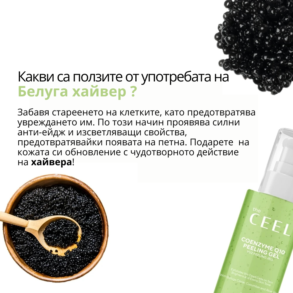 ОЗАРЯВАЩ ПИЛИНГ ГЕЛ с Коензим Q10, Белуга хайвер, Алое Вера и екстракт от Краставица - 100ml