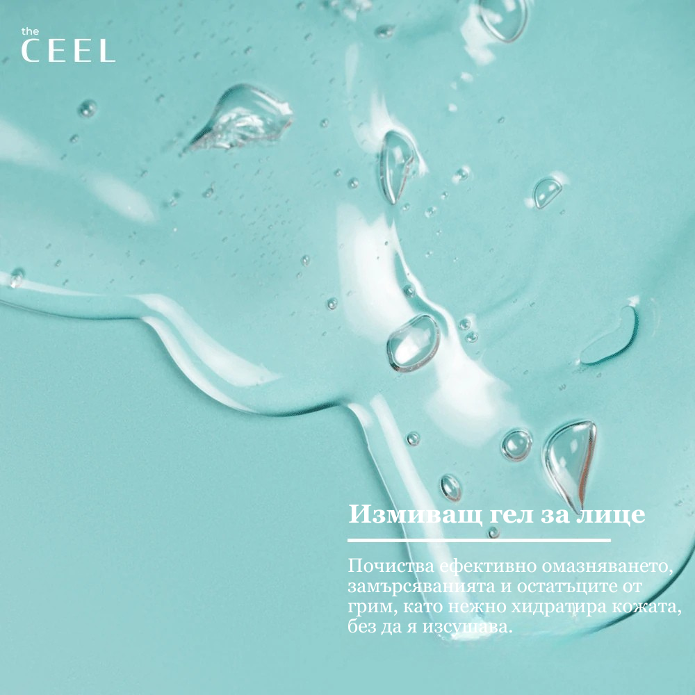 The Ceel Facial Cleanser Gel е дълбоко почистващ и възстановяващ гел, създаден да поддържа кожата чиста, хидратирана и балансирана още от първата стъпка в рутината. Формулата му комбинира нежни растителни вещества, които премахват замърсяванията, излишния себум и остатъците от грим, без да нарушават естествената бариера на кожата и без да причиняват сухота или раздразнение. В сърцето на формулата стои мощен хидратиращ комплекс от хиалуронова киселина, Sodium PCA, глицерин и пантенол, които задържат влагата и поддържат кожата мека, еластична и комфортна дори след измиване. Гелът е обогатен с уникална комбинация от растителни екстракти, които работят синергично за успокояване, тонизиране и подобряване на общото състояние на кожата. За допълнителна грижа формулата съдържа екстракти от тиквено семе, гроздови семки, морков, водорасли, корен от бодлив залист и глухарче, които осигуряват антиоксидантна защита, минерали, витамини и фитонутриенти за по-свеж и тонизиран вид.