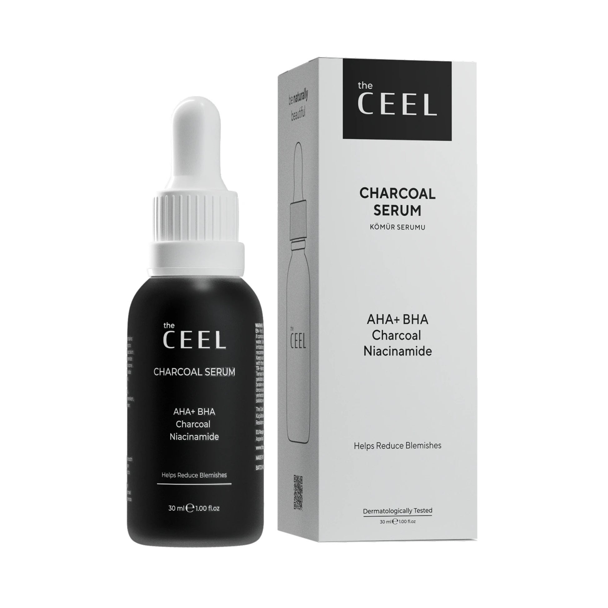 The Ceel Charcoal Serum е дълбоко почистващ и балансиращ серум, създаден специално за кожа, склонна към омазняване, запушени пори и несъвършенства. Комбинира детокс силата на активния въглен, който абсорбира излишния себум и замърсявания, с AHA + BHA киселини, които нежно ексфолират, отпушват порите и подобряват текстурата. Формулата е подсилена с ниацинамид, който успокоява, изравнява тена и намалява зачервяванията, а хиалуроновата киселина и пантенолът поддържат кожата хидратирана и комфортна. Серумът оставя усещане за чистота, матов баланс и гладкост, без да изсушава. С всяка употреба кожата изглежда по-чиста, свежа и сияйна.