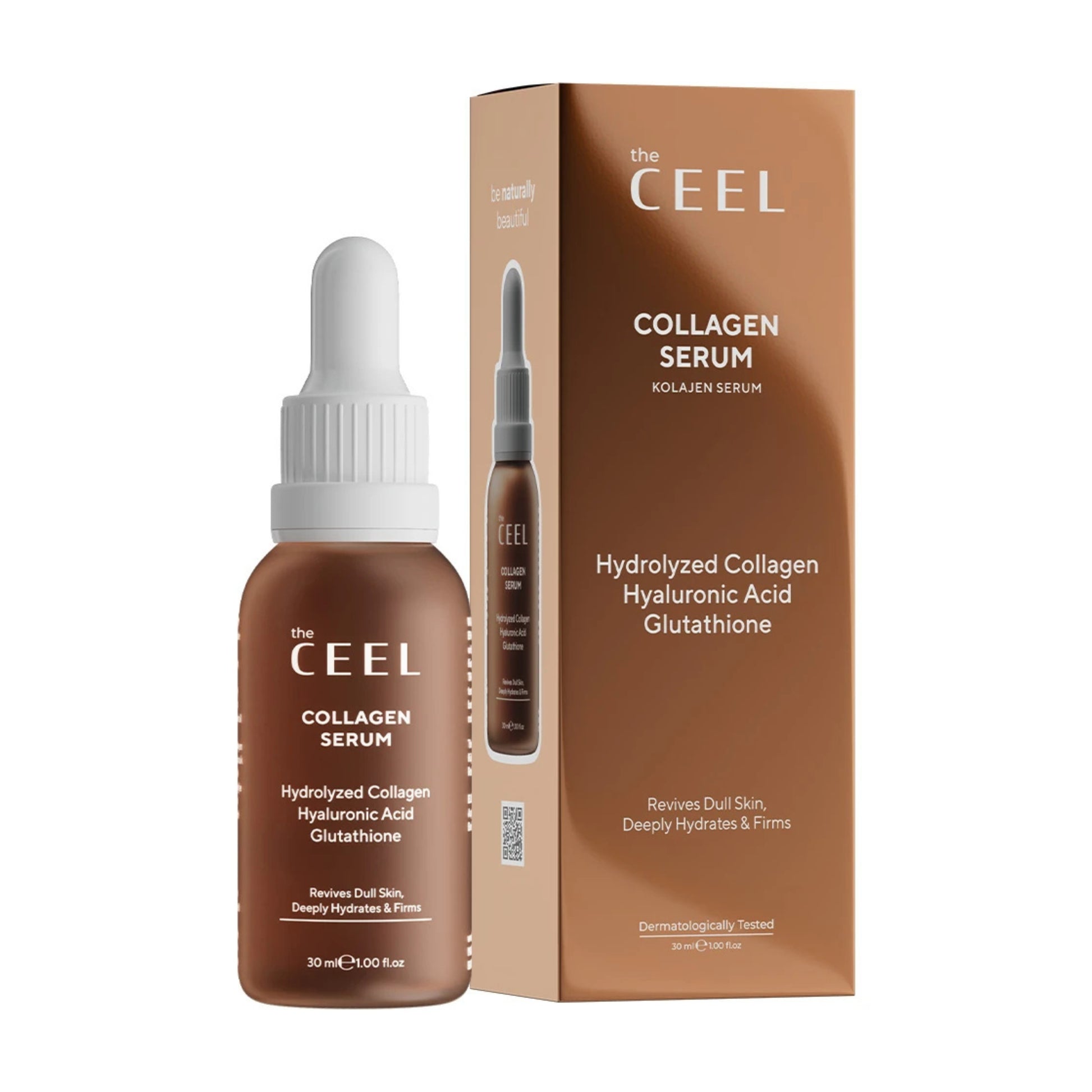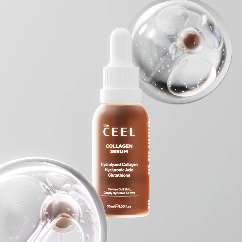 The Ceel Collagen Serum е създаден за възстановяване на еластичността, гладкостта и сиянието на кожата. Формулата комбинира Хидролизиран колаген, Глутатион и Хиалуронова киселина - три активни съставки, които подпомагат стягането, хидратацията и изравняването на тена.