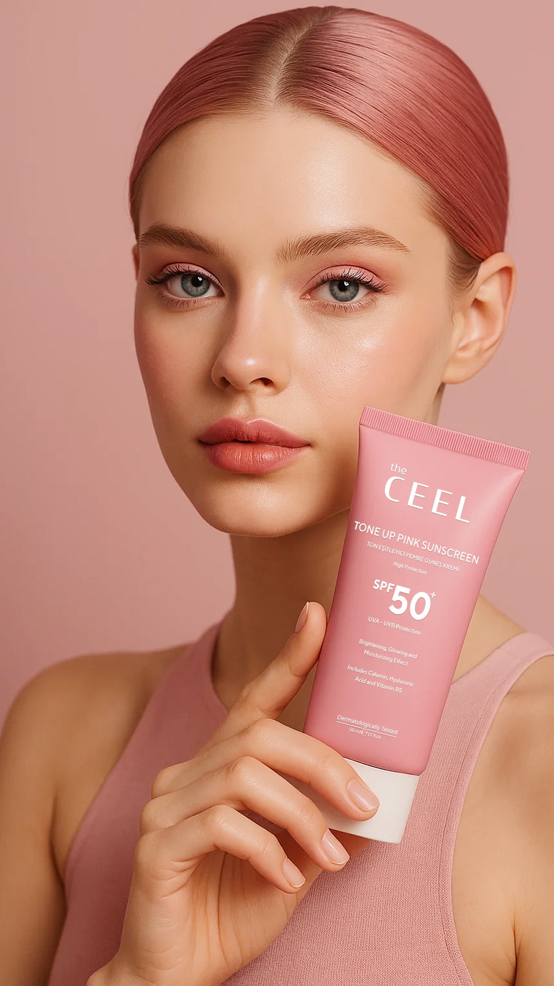 The Ceel Tone Up Pink Sunscreen SPF50+ - Озаряващият слънцезащитен крем SPF 50+ с розов тен осигурява висока UVA/UVB защита, като едновременно изравнява тена, озарява и придава естествен „glow“ ефект на кожата. Леката розова формула съдържа Каламин, който намалява зачервяванията, успокоява чувствителната кожа и създава деликатно коригиращо покритие. Богатата формула от активни съставки като Хиалуронова киселина, Алантоин, Ниацинамид, Розов Каламин, Центела Азиатика, какаов екстракт, масло от Ший, Глутатион, чаено дърво и Витамин B5 поддържат кожата хидратирана, гладка и свежа през целия ден. Резултатът е сияен, равномерен и естествено „меко подсилен“ тен - идеален за ежедневна употреба и като база за грим.