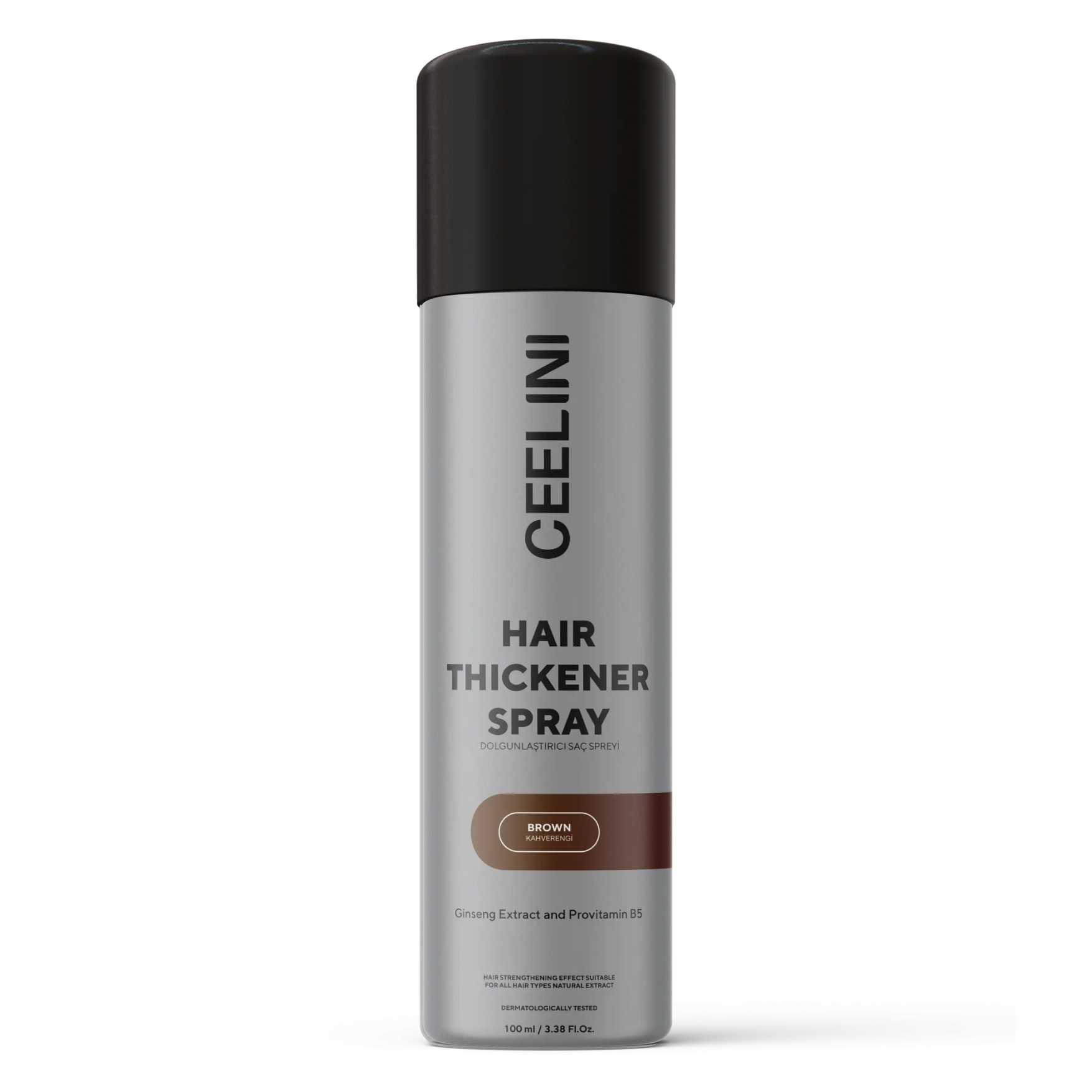 Ceelini Hair Thickener Spray е иновативен стилизиращ спрей, създаден да осигури незабавен визуален ефект на по-гъста и плътна коса. Подходящ за мъже и жени с тънка, оредяваща или неравномерно покрита коса, той запълва празни участъци, фиксира прическата и издържа през целия ден – без размазване, стичане или следи. Водо- и влагоустойчивата формула е лесна за нанасяне и премахване, като същевременно се грижи за скалпа и косата благодарение на вложените активни съставки: корен от женшен, провитамин B5 (Пантенол) и хидролизиран кератин.
