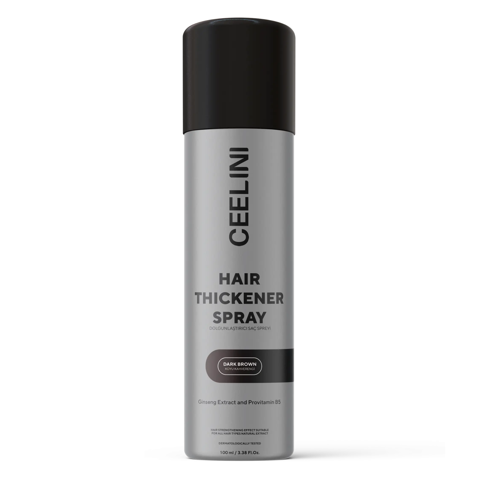 Ceelini Hair Thickener Spray е иновативен стилизиращ спрей, създаден да осигури незабавен визуален ефект на по-гъста и плътна коса. Подходящ за мъже и жени с тънка, оредяваща или неравномерно покрита коса, той запълва празни участъци, фиксира прическата и издържа през целия ден – без размазване, стичане или следи. Водо- и влагоустойчивата формула е лесна за нанасяне и премахване, като същевременно се грижи за скалпа и косата благодарение на вложените активни съставки: корен от женшен, провитамин B5 (Пантенол) и хидролизиран кератин.